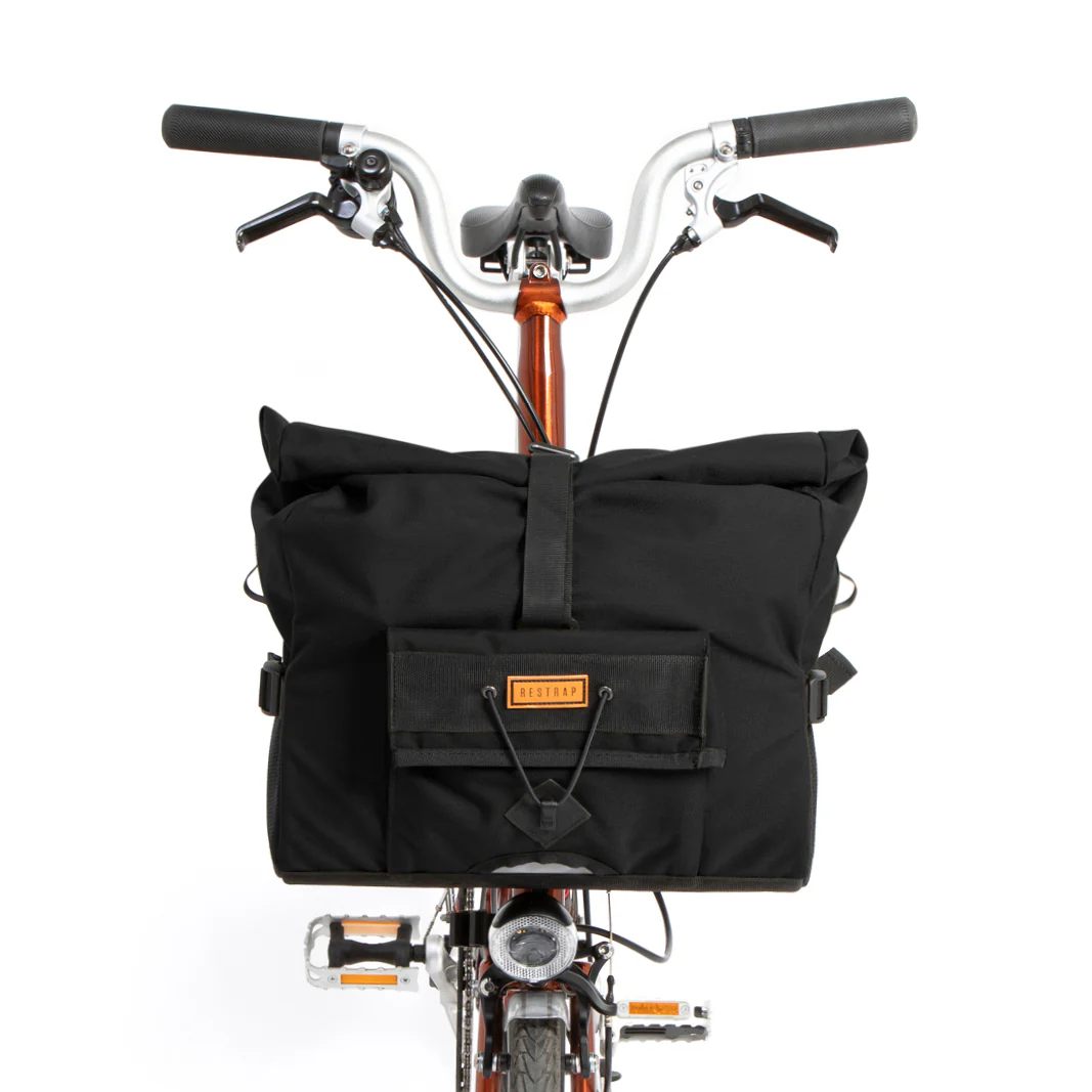 The bag is mounted via a Brompton front carrier block compatible fitting, both external and internal stiffeners enable the bag to hold its shape even when fully loaded. Made of 100% waterproof textured nylon with a tape sealed lining, spare clothes and tech are guaranteed to stay dry on the wettest of rides. The bag is also compatible with a Brompton front light, dyno light and front reflector.